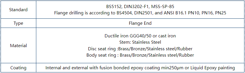 b) according to ANSI B16.10 Class125/BS5152 PN16,flanges and drilling to ANSI B16.1 Class 125/BS4504 PN16
